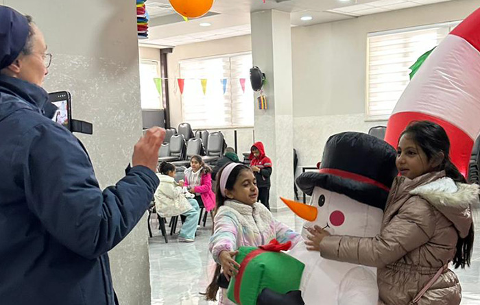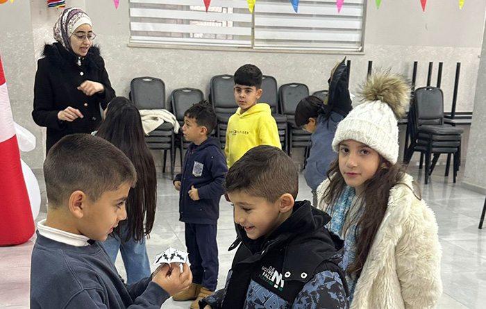 C’était une innovation en cette fin d’année 2025 : les sœurs de la Sainte-Croix de Jérusalem proposent aux élèves des classes de la 2e à la 4e (CE1 au CM1 e France) de l’école du Patriarcat latin de Taybeh un mini camp de français. Voilà une quarantaine d’élèves accompagnés d’adultes à braver le froid … on croirait que même la météo française est de la partie ! Fin décembre, le thème n’est pas difficile à trouver : on s’activera autour de l’hiver en mots et en couleurs. Traditions de Noël, la neige, les couleurs… tout s’est décliné en activités manuelles, jeux de société, concours sportifs, et bien sûr un court temps d’apprentissage lecture ou écriture.