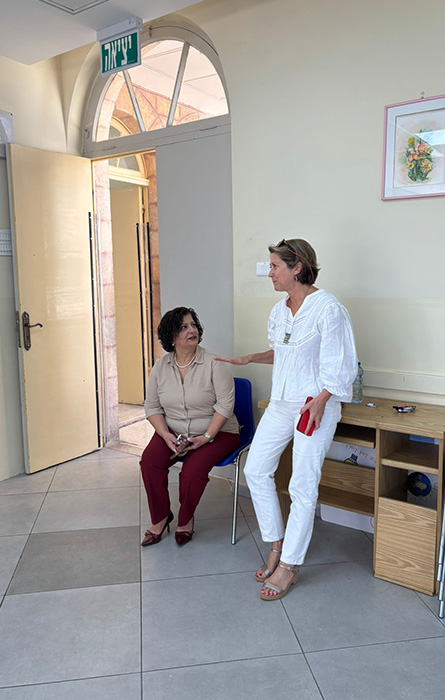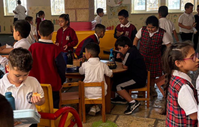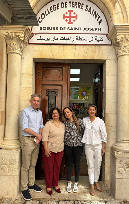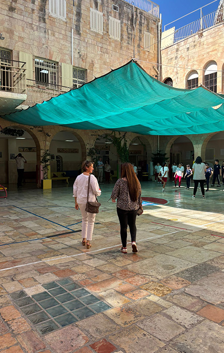 Et l’enseignement de la langue française ? C’est Sanaa Dalu qui en a la charge, dans le même état d’esprit. Depuis 20 ans, elle s’adapte aux contextes qui entourent l’école. Géopolitiques et sanitaires bien sûr, mais aussi propres à une évolution sensible de l’enseignement. En 2017, le collège et le lycée 100 % féminins quittent le magnifique batiment pour rejoindre l’établissement scolaire franciscain tout proche. Les garçons élèves en primaire chez les Franciscains prennent alors leur place. A cette époque, les sœurs de Saint-Joseph dirigeaient l’école et selon elles, avec quelques mois de recul, cette petite révolution avait beaucoup apporté à l’ambiance de l’école. Puis, en septembre 2023, soeur Frida la directrice part à la retraite, les sœurs de Saint-Joseph quittent la direction de l’établissement scolaire, et Mme Hanan Jasser reprend la main, sous la tutelle désormais des Franciscains. « Rien n’est simple nous dit-elle, dans un environnement géopolitique difficile qui impacte beaucoup l’attitude des enfants. » Mais cette femme décidée et sympathique tient bien la barre, et dans la cour de récréation, garçons et filles, joyeux et espiègles, semblent s’épanouir, protégés.
